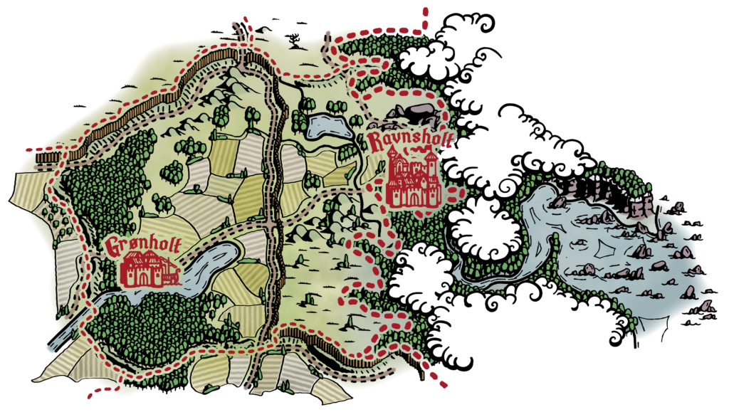 Området er dækket af græsland og skovland. Det består primært af marker, hvorpå der bliver dyrket diverse afgrøder og åbne arealer dækket af lyng. Skovområderne består af bøgetræer og gammelt egekrat, hvorimellem skovkvæg græsser. Det giver gode muligheder for at jage vildt, og de, der tør bevæge sig ind i den nærliggende vildegn Ormeskoven, har mulighed for at samle urter eller hente malm fra minen derinde.