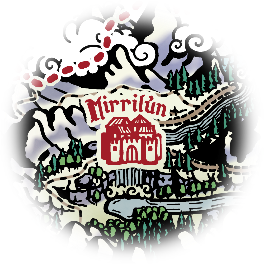 Indenfor Fladlandsk kartologi befinder byen sig i Månedalen, i landskab. Byggestilen i Mirrilún er kendetegnet ved, at bygningerne er spredt udover en række flotte og solide marmorbroer. Hele byen er bogstaveligt talt bygget på toppen af et vandfald ved navn Stjernefaldet. Byens havn befinder sig nedenfor vandfaldet, og transport derfra og op til Mirrilún sker med hejseværk.