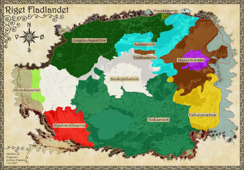 Ragnars Gyldne Regime er betegnet som Fladlandsk Rigshistorie og anvender Ny Fladlandsk Tidsregning.