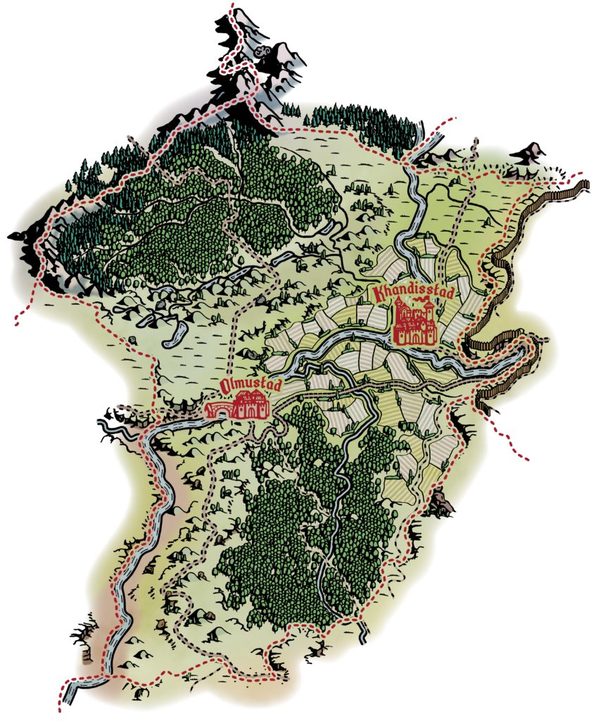 Lenet indeholder staden Olmustad samt Lensstaden Khandisstad.