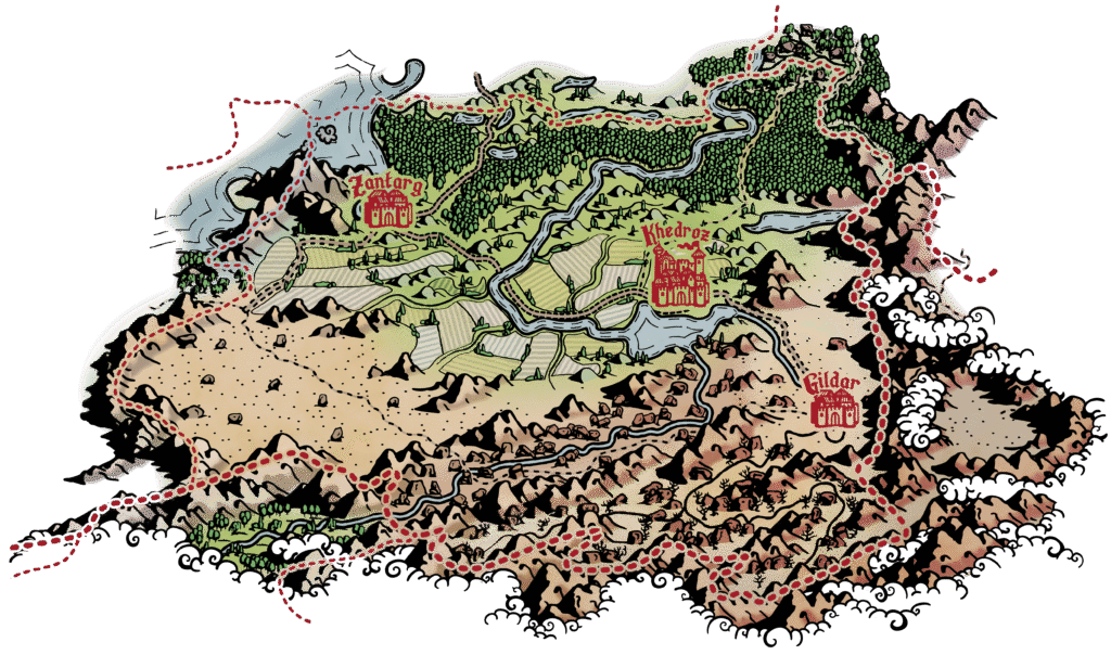 Lenet indeholder staderne Gildar og Zantarg, samt Lensstaden Khedroz.