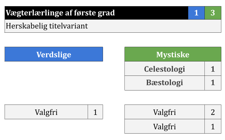 En Vægterlærling af førstegrad kan udnævne følgende titler: