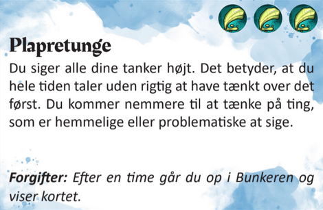 - Offgametegnet udløser du ved at lægge (og holde) en hånd fladt på dit hoved. Du bruger det, når du træder ud af rollespillet, eller hvis du har brug for at få afklaret noget i en scene.