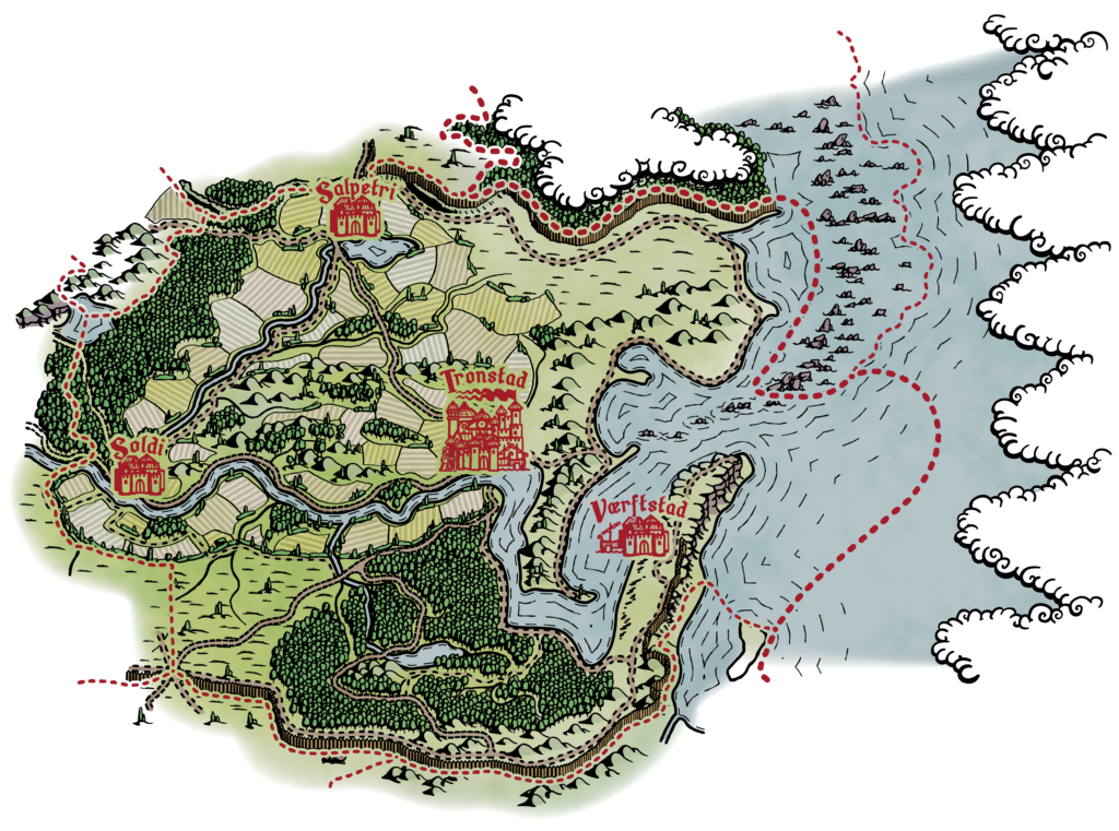 Din rolle kommer fra et sted i Fladlandet, som er inddelt i 21 Len. Du kan frit vælge, hvilket af Fladlandets 21 Len din rolle er vokset op i. I oversigten herunder finder du en kort beskrivelse af Lenene og deres kultur. Måske har din rolles hjemegn indvirkning på dens baggrundshistorie, relationer og kultur?